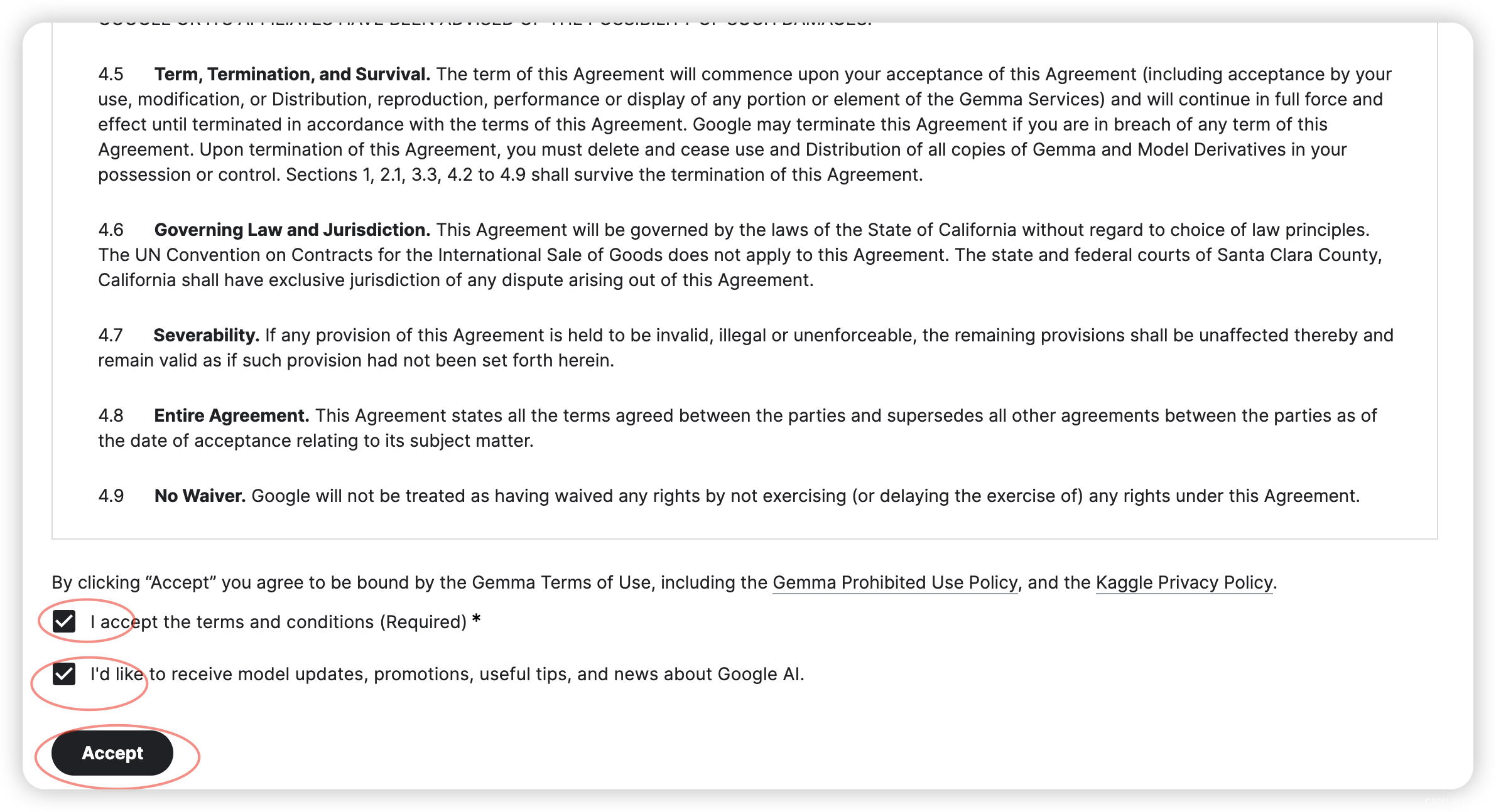 To complete this tutorial, you first need to follow the setup instructions at Gemma setup, which show you how to do the following: