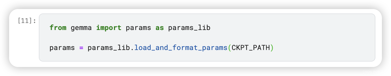 - Load and format the Gemma model checkpoint with the gemma.params.load_and_format_params method: