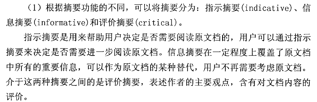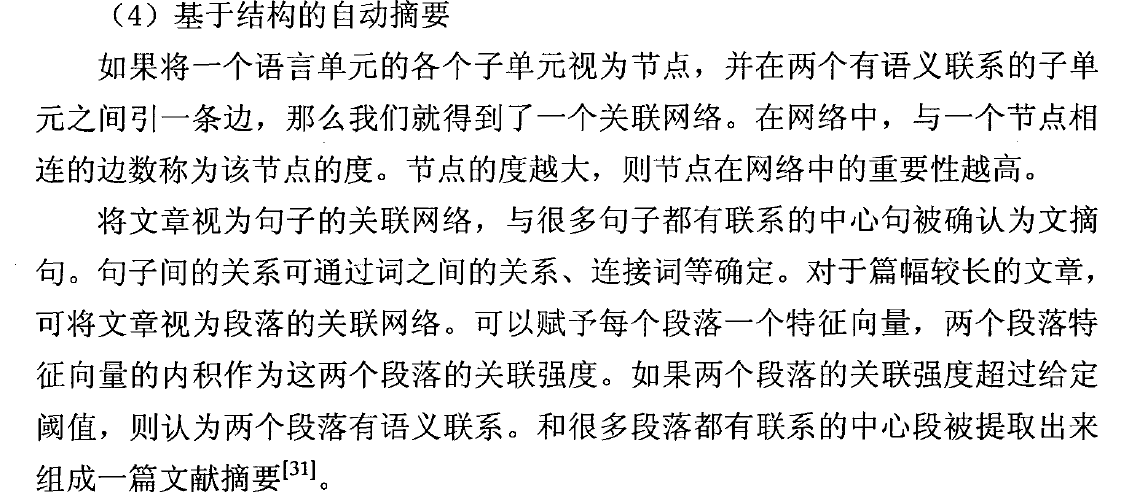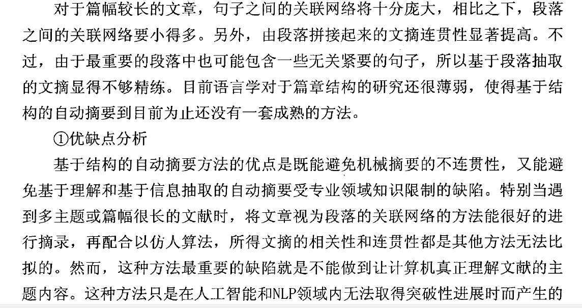 自动文本摘要的方法研究大致可分为两种自动摘要方法分析和文本结构指导的文档自动摘要方法。
