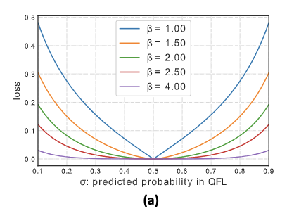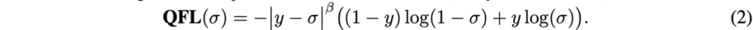 QFL和DFL可统一地表示为GFL,假定值 和 的预测概率分别为 和 ,最终的预测结果为 ,GT标签为 ,满足 ,将 作为缩放因子,GFL的公式为: