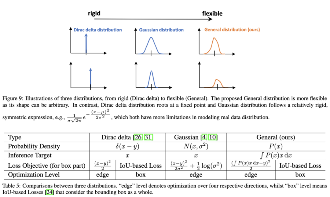 如前面说到的,这种方法没有体现预测框的真实分布,不能提供更多的信息,所以论文打算将其表示为general的分布 。给定标签 的取值范围 ,可像Dirac delta分布那样从建模的genreal分布得到预测值 :