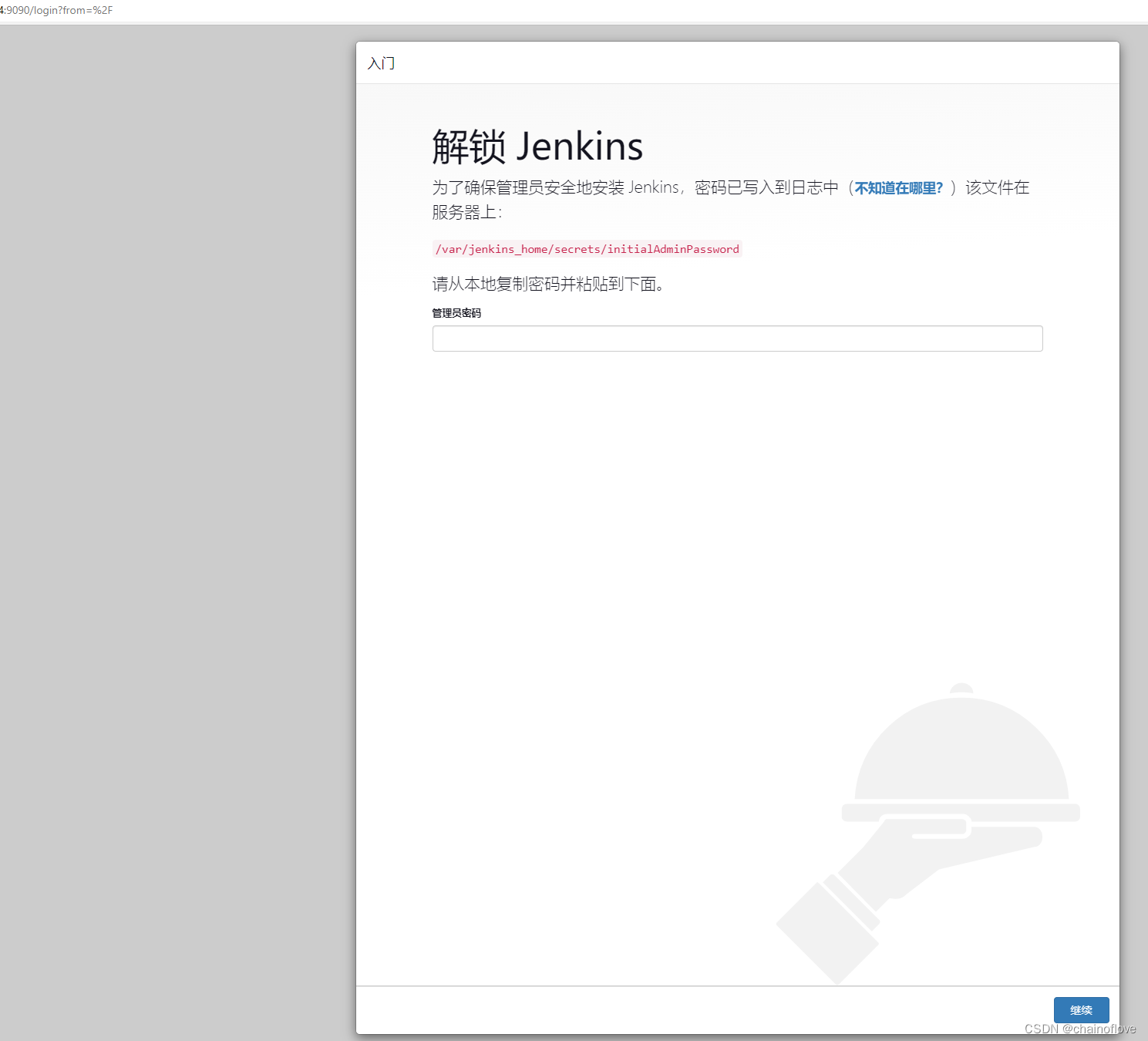 5、此时在浏览器输入ip:9090即可打开jenkins页面
