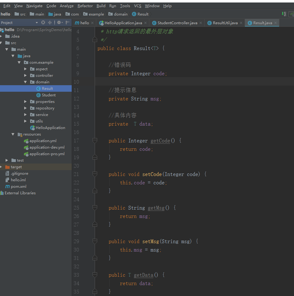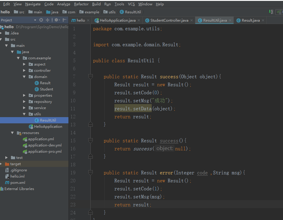 第二步:读题目意思,得知对消息的返回应该有一个统一的格式,因此创建ResultUtil.java类,封装消息返回的格式