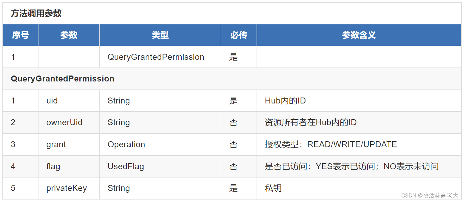 用户可以从资源所有者的uid、是否已访问和权限类型三个维度去查询所有或部分授权给自己的权限记录。