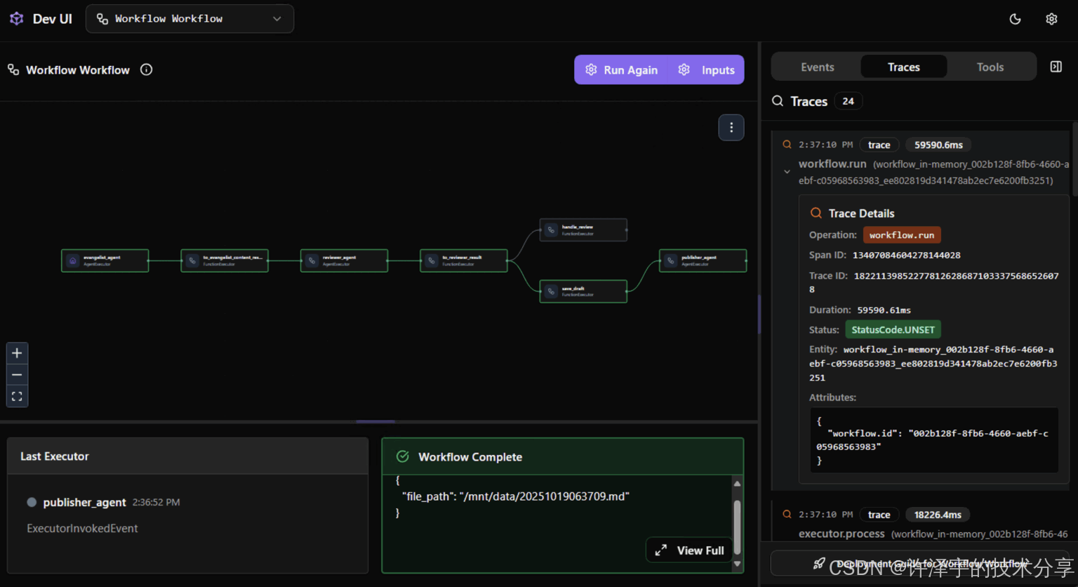 | 评估与追踪 | DevUI可视化调试 + 结构化日志 |