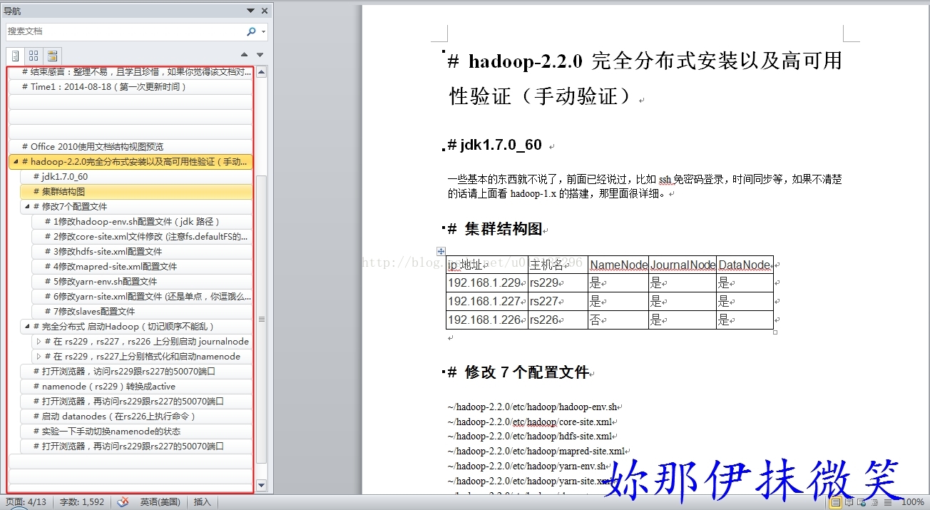 妳那伊抹微笑_云计算之Hadoop-2.X的HA(高可用性)验证安装文档V1.0.0.docx