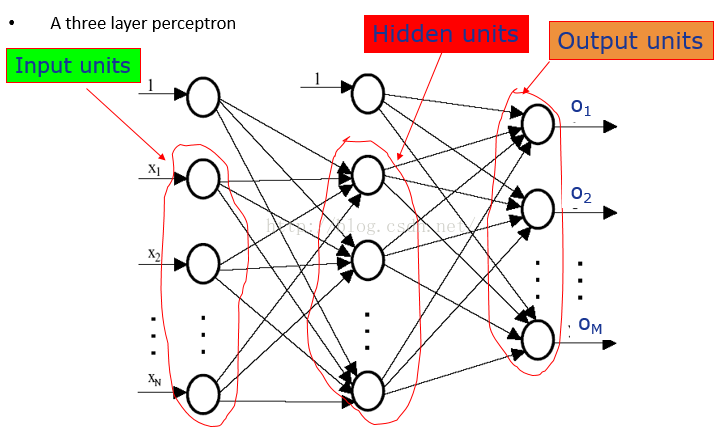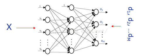 (初始时,对于每一层的每个感知器的权重向量全是很小的随机数。)