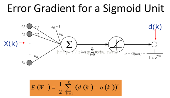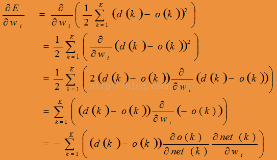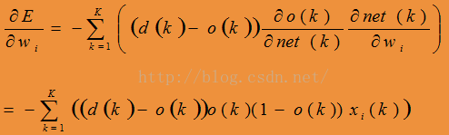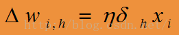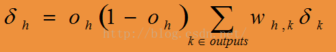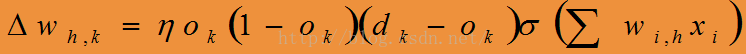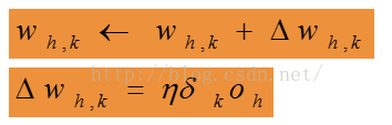 (更新输出层每个感知器的权重向量)where oh is the output of hidden layer h