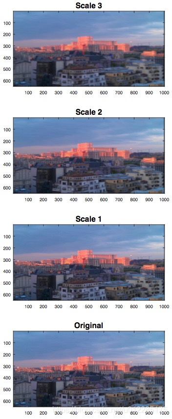 图4:图像的缩放空间。 从底部到顶部观察增加的模糊。