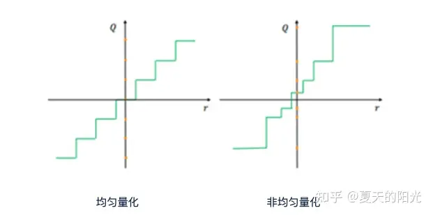如下图所示,量化可分为均匀量化和非均匀量量化。