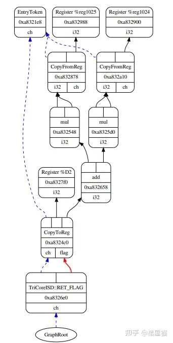DAG图合法化,3.1中的DAG图都是LLVM IR指令,但实际上LLVM IR指令不可能被芯片全部支持,这个步骤就是替换这些不合法的指令。