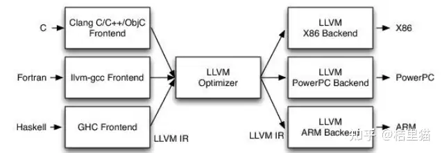 后端:后端输入是LLVM IR, 输出是我们的机器码。我们通常说的编译器应该主要是指这个部分。大部分优化都从这个地方实现。