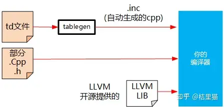 你写td文件,LLVM里有个组件叫tablegen, tablegen读取你写的td文件自动帮你转成对应的cpp文件,避免所有的cpp都要你自己写。