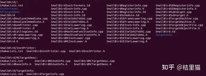 上面就是一个简单的LLVM后端你需要写的所有文件。不要看到这个地方就被劝退了,其实有些文件内容不多的,一共也就几千行代码。