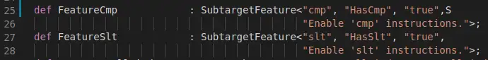 例如我们定义两个feature, 支持SLT,和支持Cmp指令。