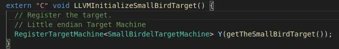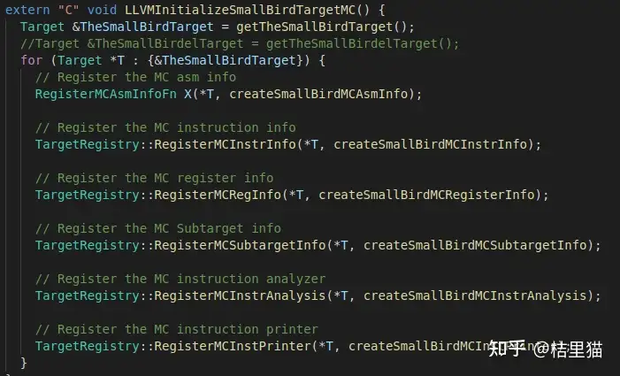 主要在LLVMInitializeSmallBirdTargetMC()里,