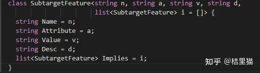 这部分其实是利用tablegen来完成的,基类是SubtargetFeature。后续我们可以确定我们某个subtarget带不带某个feature。