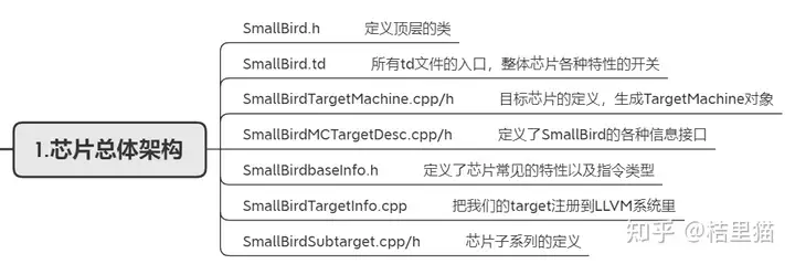本部分我们首先介绍芯片的整体架构部分。这一部分可能稍微有点儿枯燥,没有讲寄存器和指令那么的清晰明了,但它确实是LLVM编译器的入口,首先就要完成这一部分代码, 所以需要耐心看完。