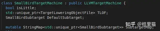 从LLVMTargetMachine里继承出我们的SmallBirdTargetMachine类。