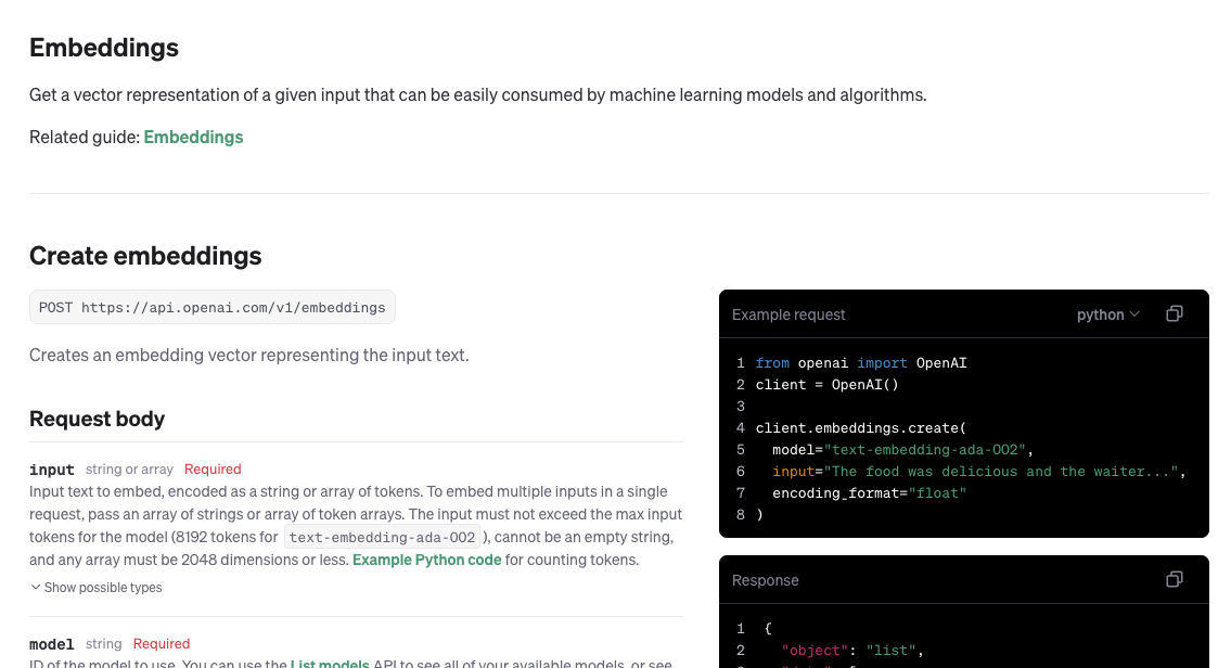 response =openai.embeddings.create(