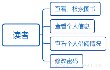 用户分为两类:读者、图书馆管理员。图书馆管理员可以修改读者信息,修改书目信息,查看所有借还日志等;读者仅可以修改个人信息、借阅或归还书籍和查看自己的借还日志。