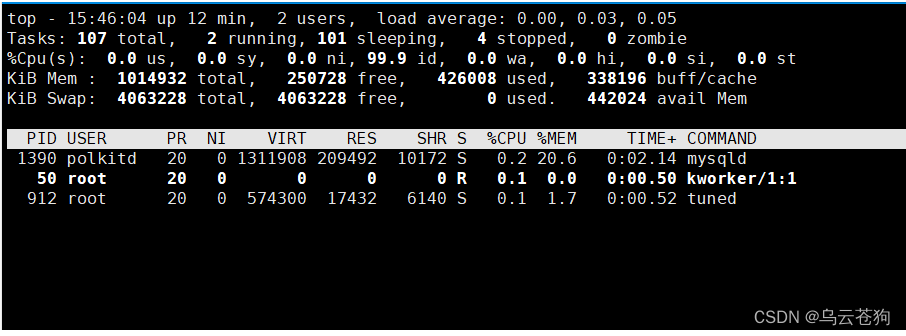 - top -1 按数字1可以看到 多个核,每个核的cpu的使用情况