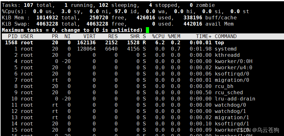 top命令默认3秒钟刷新一次数据: s 输入阿拉伯数字