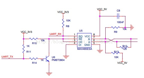理解自收发的作用,关键是要理解RE和DE的作用,尤其是DE为0时,驱动器与A\B之间就是高阻态,也就是断开状态,而且A\B都要有上下拉电阻。然后就有了逻辑0-1之间的切换了。所以很巧妙,但是这里也有一个很明显的bug,也就是只适用于“半双工”,如果是全双工,就不行了,因为TX为1时,接收使能,此时从机如果回复数据,那么也就乱了。