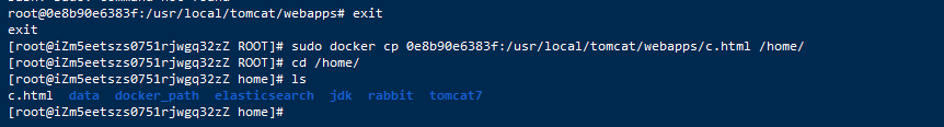 sudo docker cp 0e8b90e6383f:/usr/local/tomcat/webapps/c.html /home/