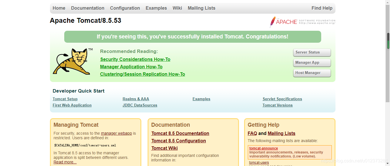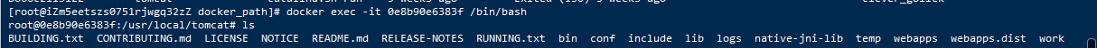 我们可以看到当前linux用户的路径变成了 root@0e8b90e6383f:/usr/local/tomcat#