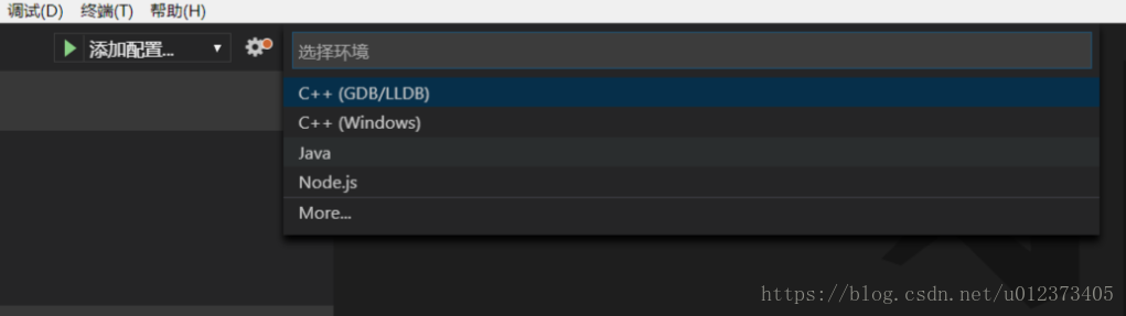 2. 插件安装成功后,并不能直接运行java程序,还需要编辑配置文件。打开调试窗口(快捷键 Ctrl+Shift+D),点击右上角的齿轮icon(如果出现错误提示请先打开一个文件夹以进行高级调试配置,也就是说只打开java文件还不够,还需要打开java文件所在的目录。)会提示选择环境,点击java,自动在当前工作目录下生成一个launch.json文件。