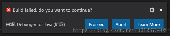 8. 点击Run,或按F5开始调试程序,如果出现错误提示"Build failed, do you want to continue?",一般是程序代码有问题,如果确定代码没问题,可以点击Learn More寻找其他的解决方案。我在遇见这个错误的时候,感觉代码上没问题,但换了一段代码后,问题解决。