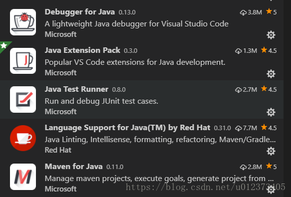 1. 首先准备好一个java文件,在VS Code中打开后缀名是.java的文件,程序会弹出安装Java Extension Pack的提示,如果没有出现提示,就在扩展选项中搜索一下这个插件(快捷键 Ctrl+Shift+X)。安装Java Extension Pack的同时,还会自动安装图中的这些插件。有的用于调试程序,有的用于构建大型项目。