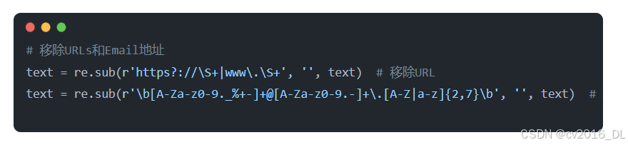 text = re.sub(r'https?://\S+|www\.\S+', '', text) # 移除URL