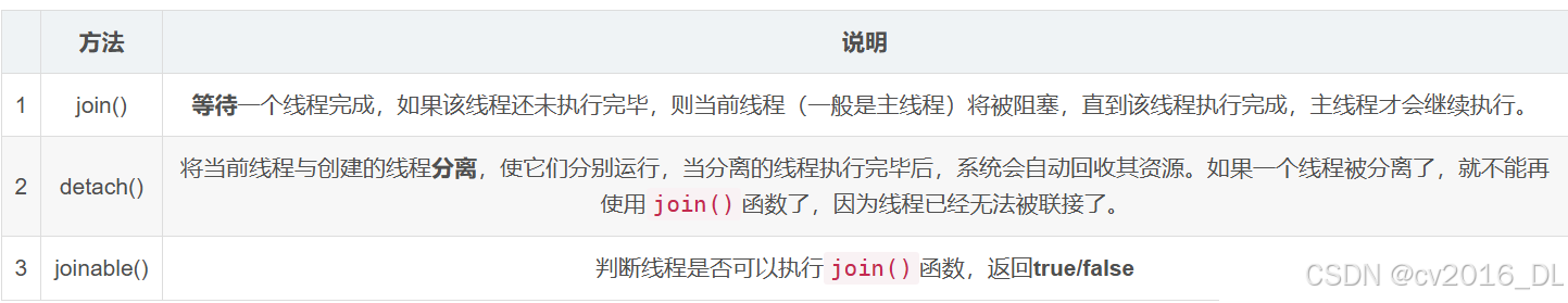 2. 分离的线程(执行过detach()的线程)会在调用它的线程结束或自己结束时自动释放资源。