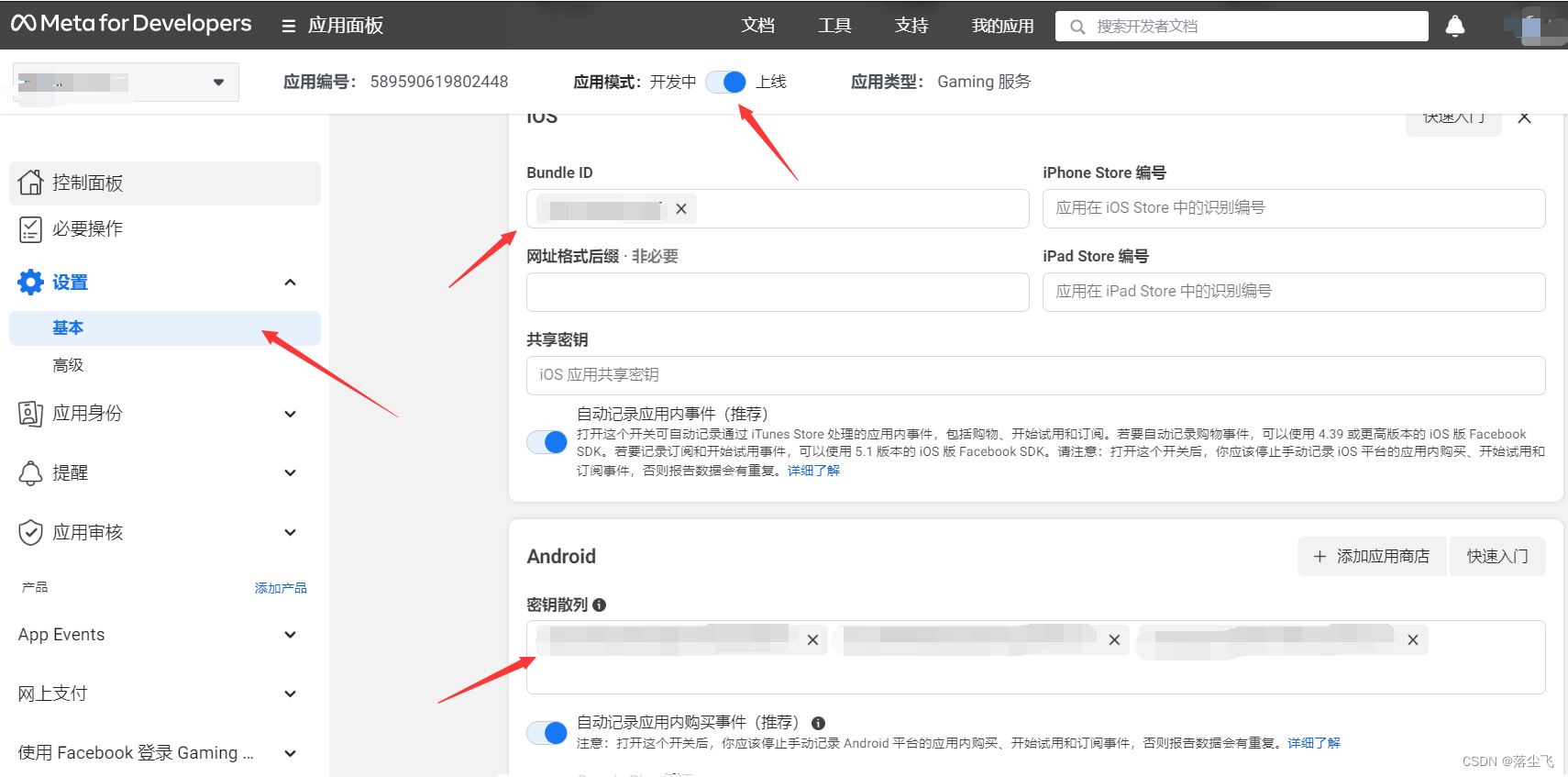 应用模式: 如果是开发中,则只有加入测试的 facebook 账号可登录,其余账号报错。