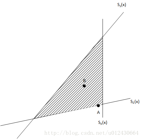 通过定义1我们能够清楚的知道,只有容许集边界上的点才能使得某一个或这某些约束条件起作用。对于上图,我们可以看出,点 AB 都是容许点,所有的约束对于容许点B来说都是不起作用约束, s2(x) 对于容许点A是起作用约束。
