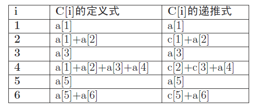 像 i == 5时,父节点下标是6,表示c[5]在c[6]管辖下,c[6]还管了个A[6],c[6] = c[5] + a[6]