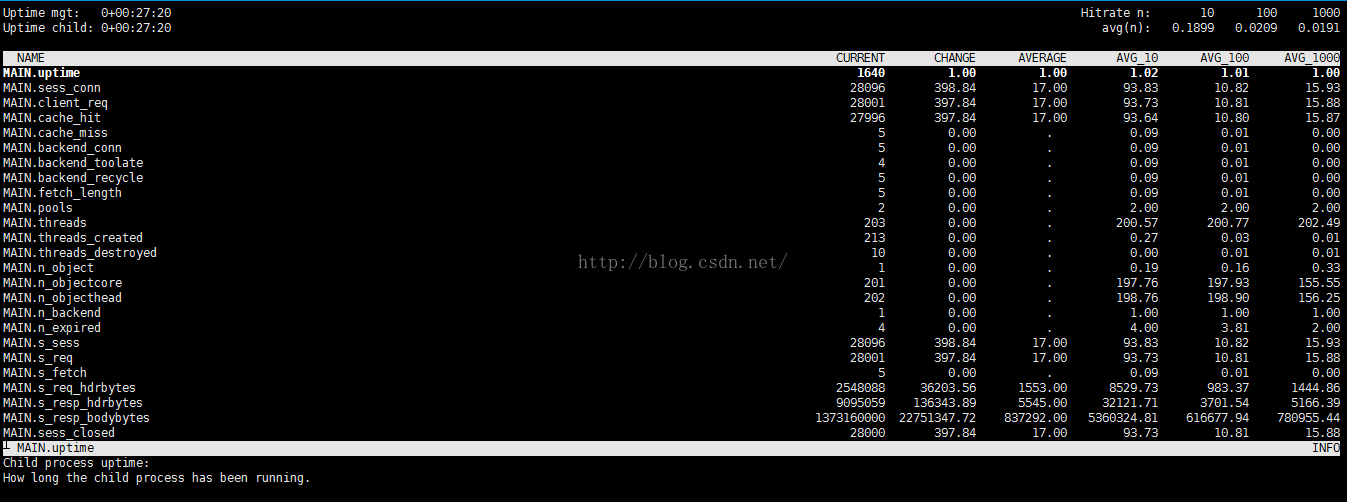 再命令行输入 varnishstat 查看下varnish监控程序。如下: