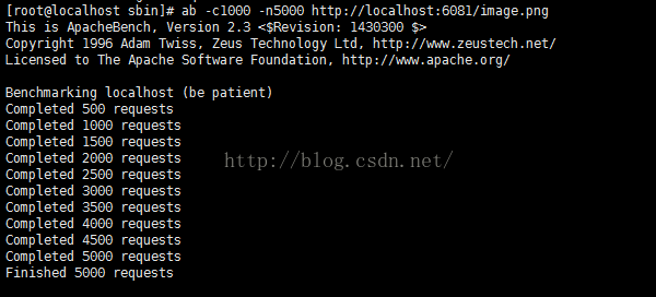 经过多次测试,发现在没有使用反向代理的情况下,apache每秒处理4500~5000个请求。