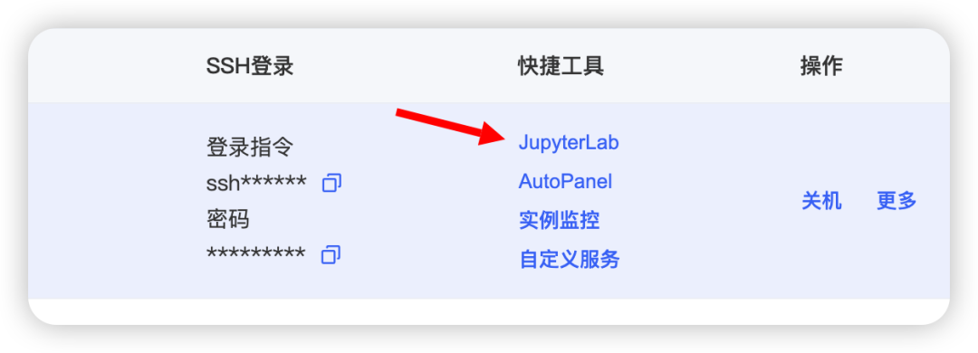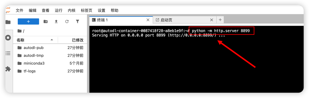 - 接下来,我们到 AutoDL 的 JupyterLab 中启动一个应用