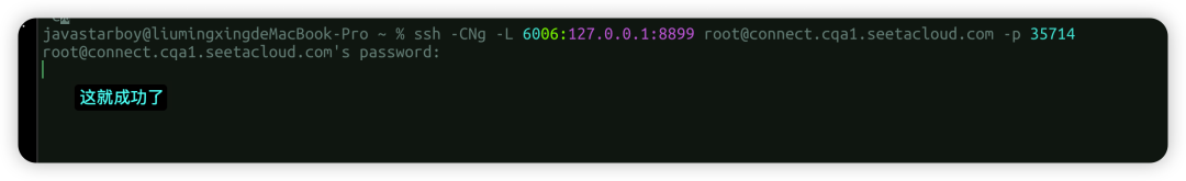 注意:执行完这条ssh命令,没有任何日志是正常的,只要没有要求重新输入密码或错误退出
