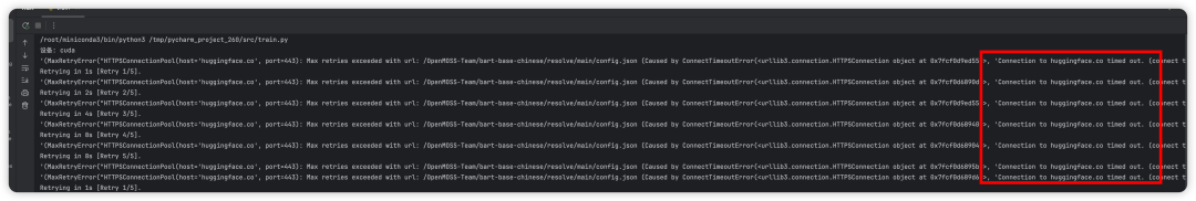 运行 train.py 训练模型你会发现,下载 huggingface 模型链接超时了