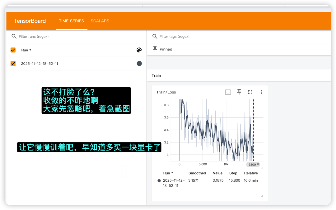/root/tf-logs - 忽略我的收敛情况,刚开始训,着急给大家截图,等训完估计得明天了,先哄娃睡觉了,晚安各位😴