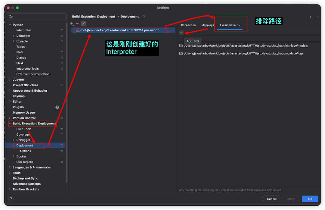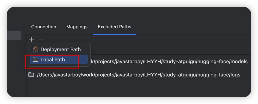 有一些 logs、model 等信息非常大,可以选排除,即不做同步,因为远端下载模型非常快,文件太大,本地同步也没啥用