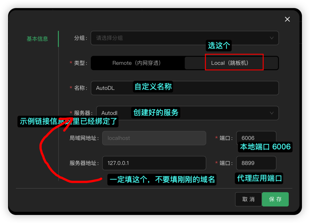 PS:AutoDL为每个实例的6006和6008端口都映射了一个可公网访问的地址,你在上面部署的其他端口应用无法直接通过公网访问。