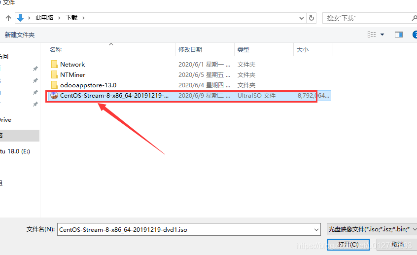 选择文件,找到打开。找到下载好的Centos系统。打开它