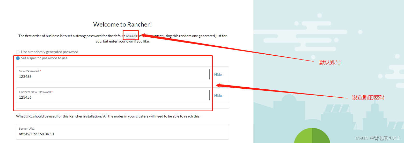重置密码: docker exec -ti rancher reset-password,在登录页面即可进行修改密码操作