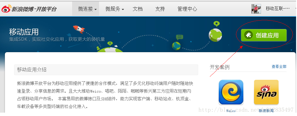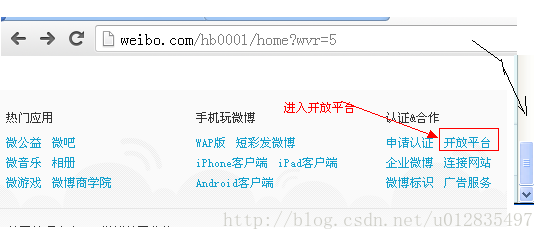 经过以上第一步,我们进入了新浪的开放平台,如图: