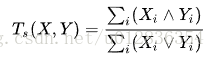 上面是广义jaccard 相似性的一种定义,另一种是Tanimoto 相似性和距离,这种相似性是两个bitmap相同位和所有位的比值, 是与,或操作,